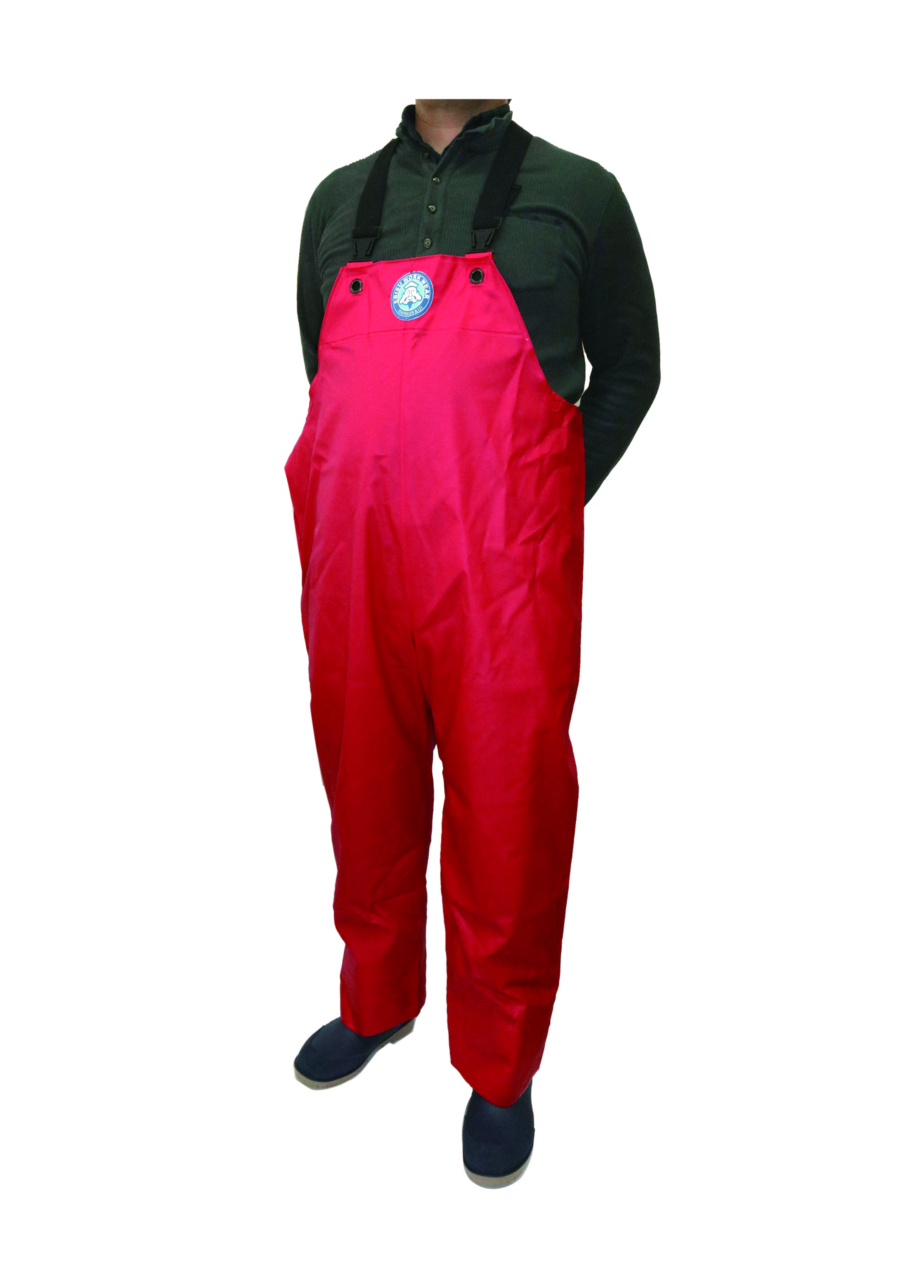 【数量限定】 阪神素地 サロペット RA57 胸付ズボン レッド 赤色 漁業合羽 水産 漁師 釣り レインズボン マリンパンツ 防水 EBISU エビスマーク