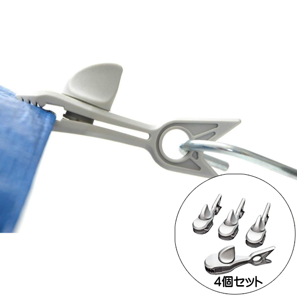ホールド力調整機能付き シャーク タープクリップ 4個セット ■ 雑貨 インテリア アウトドア サメ 鮫 魚 タープ クリップ