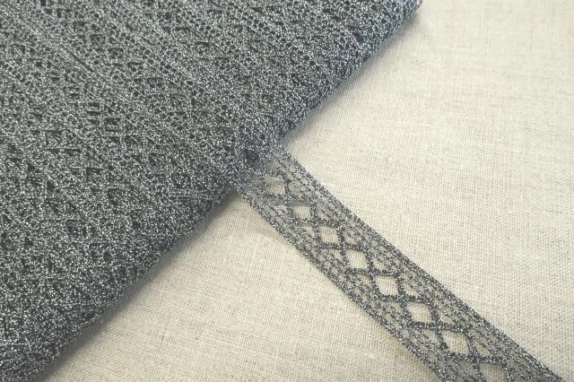 ラメレース 4m巻き マットな色合い ブラック×シルバー ジャバララメ ハシゴレース トーションレース 手芸 縁取り 装飾 日本製 12051