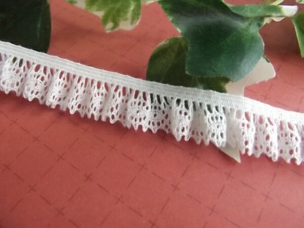 フリルトーションレース ゴム入り オフホワイト(綿素材) 14mm幅 1m単位(日本製)(1784-S)