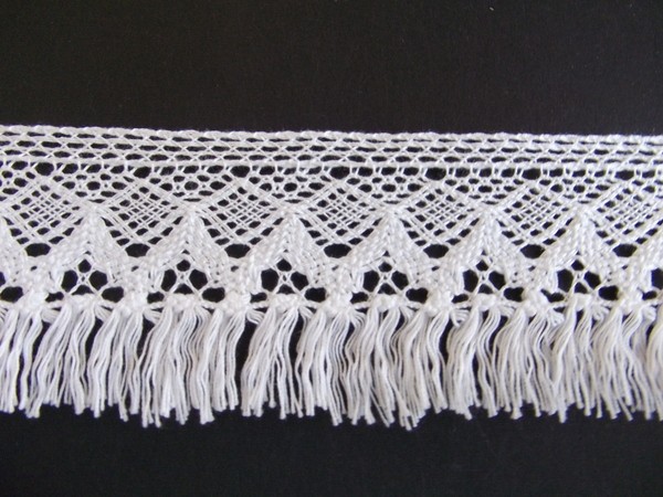 48mm幅 綺麗な柄のあるフリンジ綿トーションレース 1m単位 オフホワイト(日本製)(2242)