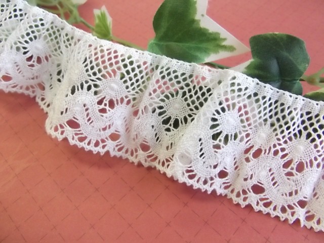 4m巻き フリルトーションレース 手芸 ゴムレース オフ白(綿素材) 45mm幅 (日本製)(7423-S)