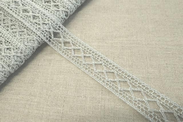 ラメレース 4m巻き マットな色合い 白×シルバー ジャバララメ ハシゴレース トーションレース 手芸 縁取り 装飾 日本製 12051
