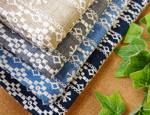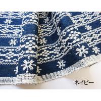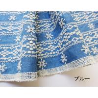 国産 デニム調生地に ストライプ柄刺繍 花柄 【1個96cmx50cm】 2個までネコポス可能 KLM123
