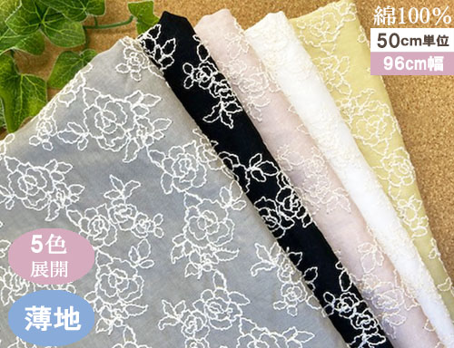 国産 コットン100%バラ柄刺繍生地 (5色) 【1個96cmx50cm】 3個までネコポス可能 KLM24