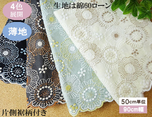 片側に裾柄がある刺繍生地です 華やかなフラワー柄がとってもかわいいです