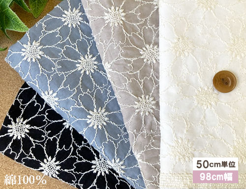 ガーベラ柄の刺繍生地 レース生地 国産 (4色)【1個98cmx50cm】3個までネコポス可能 KLM346