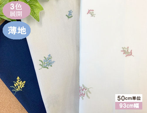 ミモザのモチーフのレース生地 刺繍生地 国産レース生地(3色)【1個93cmx50cm】5個までネコポス可能 KLM362