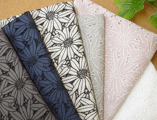 新色追加 国産 マーガレット柄国産刺繍生地 (6色) 【1個96cmx50cm】 3個までネコポス可能 KLM54