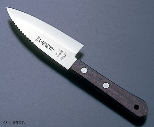 ※庖丁の表示サイズは、マチ付庖丁は刃先からマチまで、 マチなし庖丁は刃渡り寸法となっております。 材質:バナジウムステンレス鋼●主に小魚の解体に便利です。