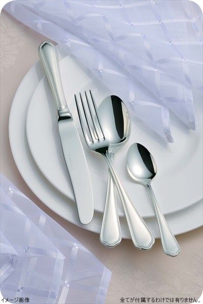 Silver Plated PigalleSA 18-8 ピガール 銀仕様 材 質:18-8ステンレス鋼 処 理:銀メッキ/ ハーフサテン・ベルベット仕上TM メッキ厚:3.8μ オープンストック:47アイテム※幅表示サイズの( )内表記は刃渡りとなります。※HHマークの製品はハンドル部が空洞(モナカ)です。●洗浄機使用の場合は、洗剤メーカー又は代理店に御相談の上 使用してください。●洗剤によっては腐蝕する場合がありますので御注意ください。