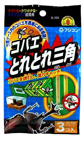 コバエを誘引し強力キャッチ!・特殊粘着シートのセットされた三角トラップでコバエを効率良く誘引し捕らえます。 ・粘着保護シールドタイプなので小型飼育ケース内でもカブト虫などがひっつくことはありません。