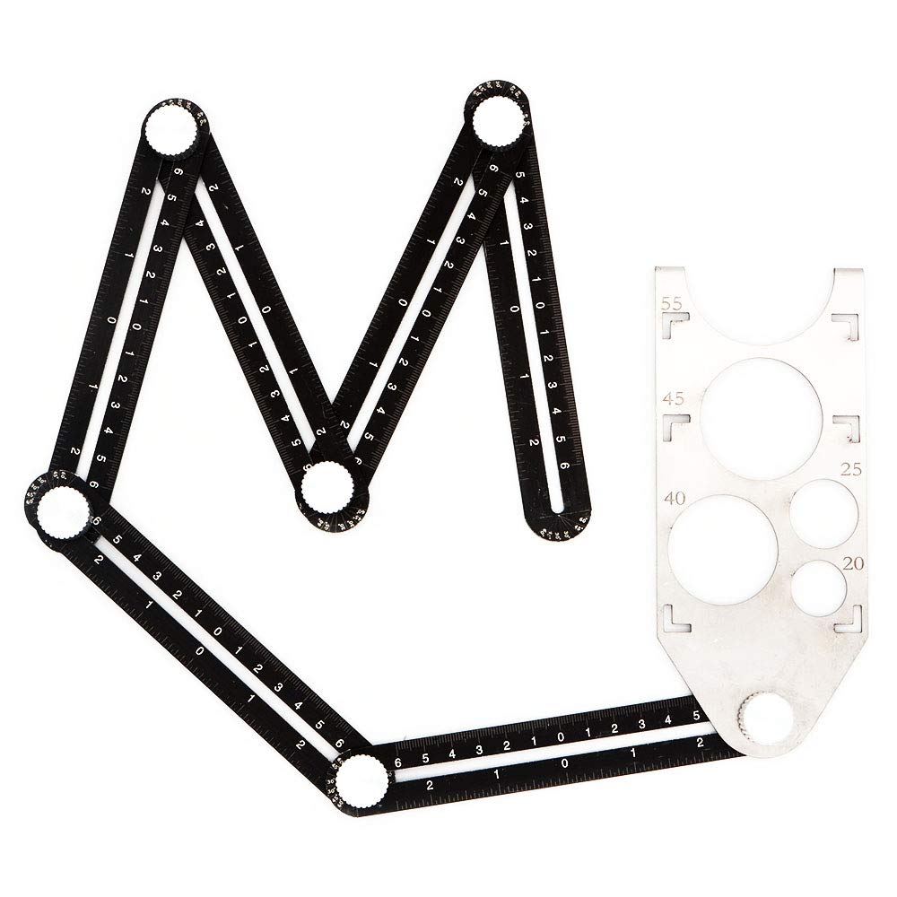NUZAMASアルミ合金マルチアングルルーラー、アングルイザーインスタントテンプレート、メタルメジャー、DIY用ホールポジショニング付き折りたたみ式ル