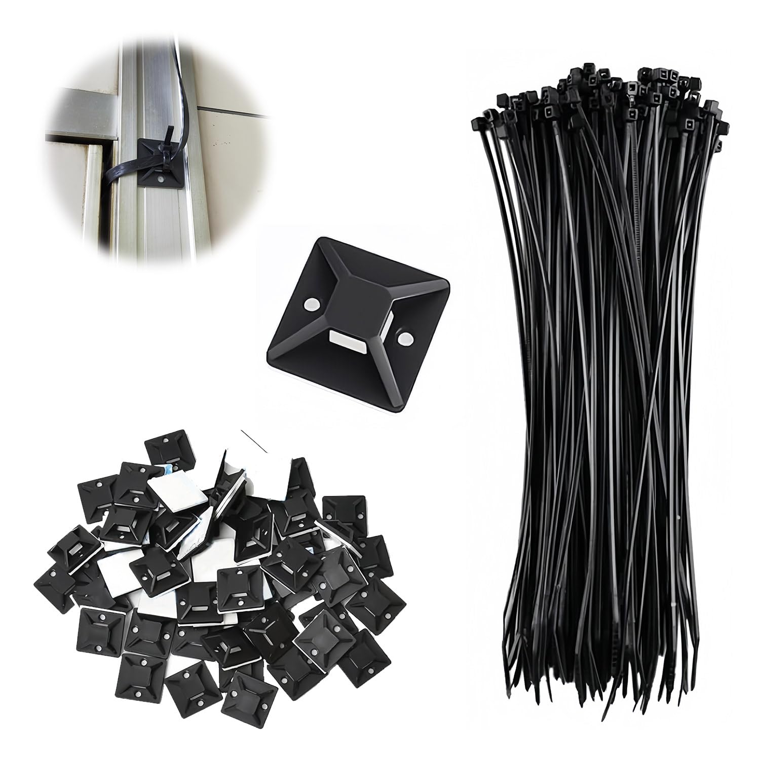 【パッケージ内容】数量:マウントベース*100+ジップタイ*100;サイズ:2cm×2cm;カラー:黒