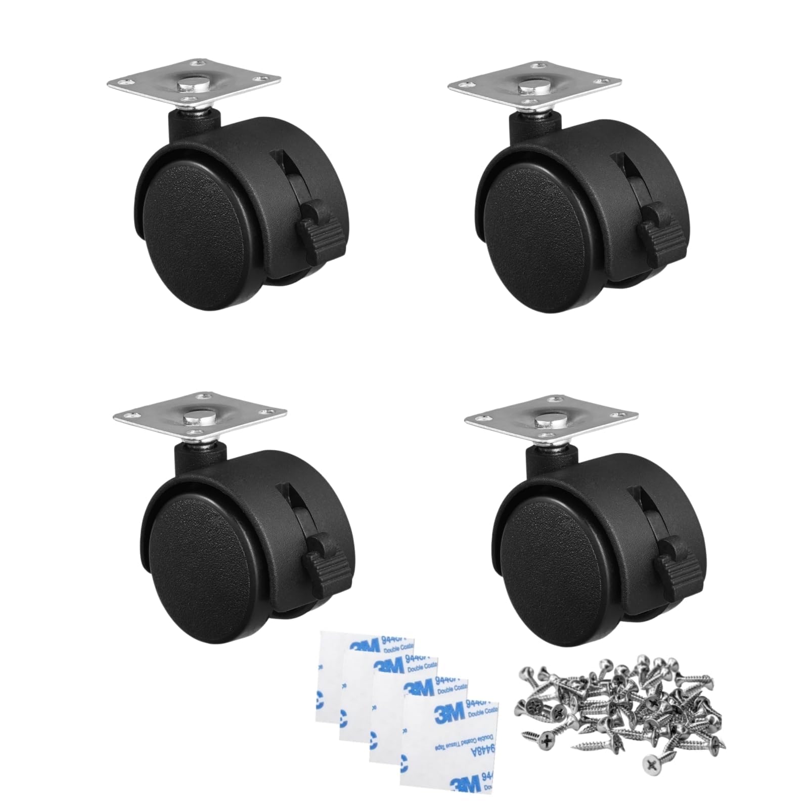 貼るだけキャスター(すべてブレーキ付き)後付け 強力両面テープ&ネジ付き 交換タイヤキット DIY家具の交換キット 粘着テープ式キャスター 木材やタイ