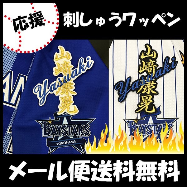 【【メール便送料無料】納期注意【横浜DeNAベイスターズ 刺繍ワッペン 山崎 ネーム】山崎康晃 /応援歌/ユニフォーム/優勝/プロ野球/刺繍/刺しゅう/ワッペン