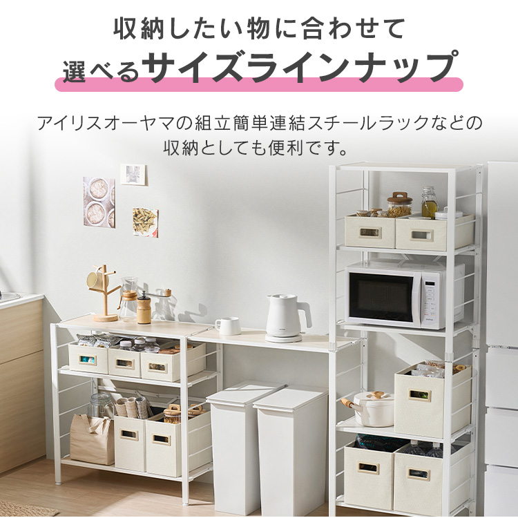アイリスオーヤマの組立簡単連結スチールラックやスチールポールラック、カラーメタルラックなどの収納にぴったりのサイズです。