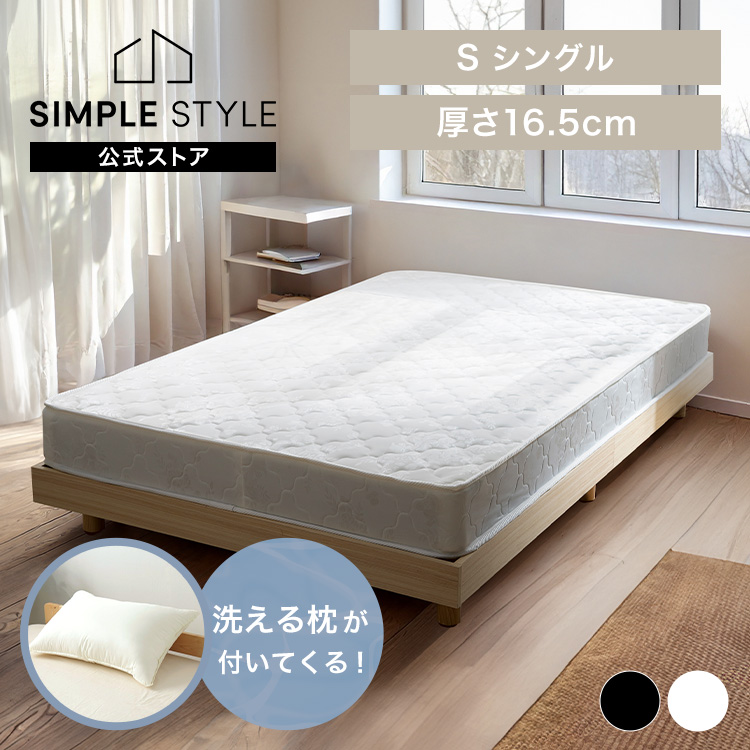 \洗える枕セット/ マットレス シングル 硬め 新生活 ベッドマットレス マットレスベッド ボンネルコイルマットレス シングルマットレス 圧縮梱包 白 黒
