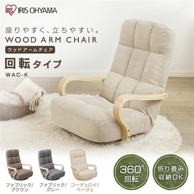 座椅子 座いす 回転式 肘付き おしゃれ リクライニング 折りたたみ 折り畳み 高齢者 和室 洋室 ソファー 一人掛け 1人掛け お洒落 アイリスオーヤマ WAC-K