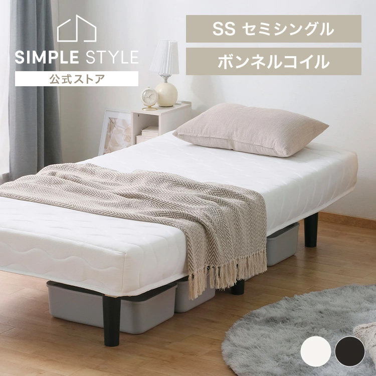 脚付きマットレス セミシングル ベッド ボンネルコイル マットレス付き すのこベッド アイリスオーヤマ 白 黒 おしゃれ お洒落 北欧 シンプル 足付き BAM-SS