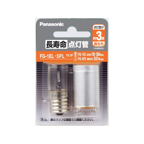 JIS規格品比約3倍長持ち。適合ランプ:FG-1EL蛍光灯10〜30形ほか、FG-5PL蛍光灯32形ほか。