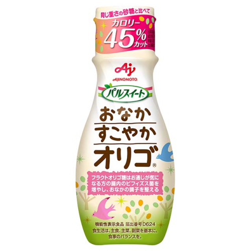 | 同じ重さの砂糖と比べてカロリー45%カットの「パルスイート」ブランドのオリゴ糖甘味料です。 腸内のビフィズス菌を増やしおなかの調子を整えるフラクトオリゴ糖を含んだ機能性表示食品です。 ヨーグルトや飲み物などにおすすめです。 |