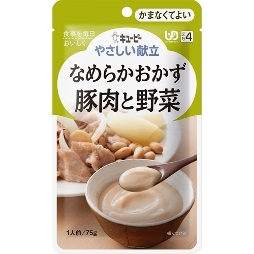 名称 介護食 内容量 75g 使用方法・用法及び使用上の注意 お湯で温める場合 ・沸騰させて加熱を止めたお湯に、袋の封を切らずに入れて温めてください。※約1分 電子レンジで温める場合 ・必ず中身を深めの容器に移し、ラップをかけて温めてください。※500Wで約20秒 ※加熱不足時は10秒ずつ追加加熱してください。 ・温めすぎると状態がぬるくなります。 使用上の注意 ・温めた後に、中身がはねてヤケドをする恐れがありますのでご注意ください。 ・加熱後はヤケドをしないように温度を確かめてください。 ・食事介助が必要な方にご利用の際は、飲み込むまで様子を見守ってください。 ・乳幼児向け商品ではありません。 ・黒い粒は原材料の一部です。 ・この商品はレトルトパウチ食品です。 ・保存料は使用していません。 保管および取扱い上の注意 ・直射日光を避け、常温で保存してください。 原材料 ・野菜(じゃがいも、しょうが)、豚肉、ソテーオニオン、植物油脂、大豆、しょうゆ、米発酵調味料、食塩、ポークエキス、砂糖、香辛料、増粘剤(加工でん粉、キサンタンガム)、卵殻カルシウム、調味料(アミノ酸等)、カラメル色素、(原材料の一部に乳成分・小麦を含む) 栄養成分:1袋(75g)当たり ・エネルギー:75kcal、たんぱく質:2.4g、脂質:5.4g、糖質:3.8g、食物繊維:0.7g、ナトリウム:222mg、カルシウム:49mg、(食塩相当量:0.6g) 原材料に含まれるアレルギー物質 ・卵・乳成分・小麦・大豆・豚肉 賞味期限 パッケージに記載 発売元、製造元、輸入元又は販売元、消費者相談窓口 キユーピー株式会社東京都渋谷区渋谷1-4-13電話:0120-14-1122 原産国 日本 商品区分 介護用品 |