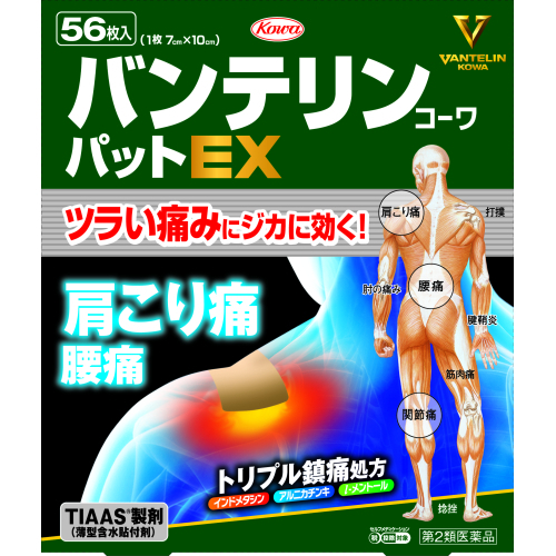 | 医薬品の使用期限 医薬品に関しては特別な表記の無い限り、1年以上の使用期限のものを販売しております。1年以内のものに関しては使用期限を記載します。 名称 外用鎮痛消炎薬 内容量 56枚 使用方法・用法及び使用上の注意 プラスチックフィルムをはがし,1日2回を限度として患部に貼付してください。 用法関連注意 (1)用法・用量を守ってください。 (2)本剤は,痛みやはれ等の原因になっている病気を治療するのではなく,痛みやはれ等の症状のみを治療する薬剤なので,症状がある場合だけ使用してください。 (3)汗をかいたり,患部がぬれている時は,よく拭きとってから使用してください。 (4)皮膚の弱い人は,使用前に腕の内側の皮膚の弱い箇所に,1〜2cm角の小片を目安として半日以上貼り,発疹・発赤,かゆみ,はれ,かぶれ等の症状が起きないことを確かめてから使用してください。 (5)連続して2週間以上使用しないでください。 ■してはいけないこと (守らないと現在の症状が悪化したり,副作用が起こりやすくなります) 1.次の人は使用しないでください (1)本剤又は本剤の成分によりアレルギー症状を起こしたことがある人。 (2)ぜんそくを起こしたことがある人。 (3)15歳未満の小児。 2.次の部位には使用しないでください (1)目の周囲,粘膜等。 (2)湿疹,かぶれ,傷口。 (3)みずむし・たむし等又は化膿している患部。 3.長期連用しないでください ■相談すること 1.次の人は使用前に医師,薬剤師又は登録販売者に相談してください (1)医師の治療を受けている人。 (2)妊婦又は妊娠していると思われる人。 (3)薬などによりアレルギー症状を起こしたことがある人。 2.使用後,次の症状があらわれた場合は副作用の可能性がありますので,直ちに使用を中止し,この外箱を持って医師,薬剤師又は登録販売者に相談してください [関係部位:症状] 皮膚:発疹・発赤,かゆみ,はれ,かぶれ,ヒリヒリ感,熱感,乾燥感 3.5〜6日間使用しても症状がよくならない場合は使用を中止し,この外箱を持って医師,薬剤師又は登録販売者に相談してください 効能・効果 肩こりに伴う肩の痛み,腰痛,関節通,筋肉痛,腱鞘炎(手・手首の痛み),肘の痛み(テニス肘など),打撲,捻挫 成分・分量 膏体100g中 成分 分量 内訳 インドメタシン 1.0g アルニカチンキ 1mL (アルニカ0.2g) l‐メントール 1.2g 添加物 ポリビニルアルコール(部分けん化物),アクリル酸メチル・アクリル酸-2-エチルヘキシル共重合樹脂,ポリオキシエチレンノニルフェニルエーテル,ポリアクリル酸部分中和物,カルメロースナトリウム(CMC-Na),オレイン酸ソルビタン,グリセリン,D-ソルビトール,亜硫酸水素Na,エデト酸Na,チモール,ジヒドロキシアルミニウム アミノアセテート,乳酸,マクロゴール,アジピン酸ジイソプロピル 保管および取扱い上の注意 (1)高温をさけ,直射日光の当たらない湿気の少ない涼しい所に密封して保管してください。 (2)小児の手の届かない所に保管してください。 (3)他の容器に入れ替えないでください。(誤用の原因になったり品質が変わります。) (4)品質保持のため,開封後の未使用分は薬袋に入れ,開口部のチャックをきちんとしめて密封し,保管してください。 (5)使用期限(外箱及び薬袋に記載)をすぎた製品は使用しないでください。 賞味期限又は使用期限 パッケージに記載 発売元、製造元、輸入元又は販売元、消費者相談窓口 興和株式会社東京都中央区日本橋本町三丁目4-14電話:03-3279-7755(医薬品・化粧品) 原産国 日本 商品区分 医薬品 |