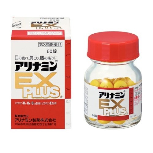 アリナミンEXプラスは,吸収にすぐれたビタミンB1誘導体 フルスルチアミン,ビタミンB6,ビタミンB12を配合し,「目の疲れ」「肩こり」「腰の痛み」などのつらい症状にすぐれた効果をあらわします。 補酵素(コエンザイムA)となってエネルギーの産生に重要な働きをするパントテン酸カルシウム,体のすみずみの血液循環に関与するビタミンEを配合しています。 服用しやすい黄色の糖衣錠です。 |
