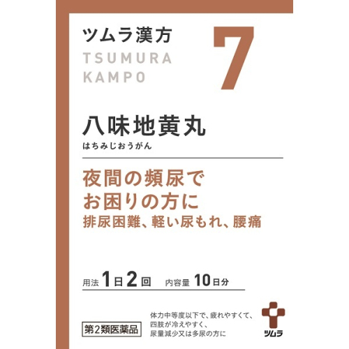 | 「八味地黄丸」は,漢方の原典である『金匱要略』に記載されている漢方薬で,なかなか疲れがとれなくて,「腰が痛い」,「小便の出が悪い」,「夜何度も小便に起きる」,「軽い尿もれ」等の症状がある時に用いられています。 『ツムラ漢方八味地黄丸料エキス顆粒A』は,「八味地黄丸」から抽出したエキスより製した服用しやすい顆粒です。 夜間の頻尿でお困りの方に排尿困難、軽い尿もれ、腰痛 |