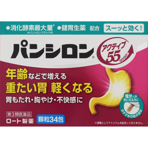 | 医薬品の使用期限 医薬品に関しては特別な表記の無い限り、1年以上の使用期限のものを販売しております。1年以内のものに関しては使用期限を記載します。 名称 胃腸薬 内容量 34包 使用方法・用法及び使用上の注意 次の量を食後又は食間・就寝前に水又はお湯で服用してください。 [年齢:1回量:1日服用回数] 成人(15才以上):1包:3回 11才以上15才未満:2/3包:3回 8才以上11才未満:1/2包:3回 5才以上8才未満:1/3包:3回 3才以上5才未満:1/4包:3回 3才未満:服用しないこと ※食間とは…食後2?3時間をさします。 用法関連注意 (1)用法・用量を厳守してください。 (2)小児に服用させる場合には,保護者の指導監督のもとに服用させてください。 ■相談すること 1.次の人は服用前に医師,薬剤師又は登録販売者にご相談ください。 (1)医師の治療を受けている人 (2)薬などによりアレルギー症状を起こしたことがある人 (3)次の診断を受けた人 腎臓病,甲状腺機能障害 2.服用後,次の症状があらわれた場合は副作用の可能性があるので,直ちに服用を中止し,この説明書を持って医師,薬剤師又は登録販売者にご相談ください。 [関係部位:症状] 皮ふ:発疹・発赤,かゆみ 3.2週間位服用しても症状がよくならない場合は服用を中止し,この説明書を持って医師,薬剤師又は登録販売者にご相談ください。 効能・効果 もたれ(胃もたれ),胃重,消化促進,消化不良による胃部・腹部膨満感,胃酸過多,胸やけ,胃部不快感,胃部膨満感,胸つかえ,げっぷ(おくび),吐き気(むかつき,胃のむかつき,二日酔・悪酔のむかつき,嘔気,悪心),嘔吐,飲み過ぎ(過飲),胃痛,食欲不振(食欲減退),胃部・腹部膨満感,消化不良,胃弱,食べ過ぎ(過食) 成分・分量 3包中 成分 分量 ビオヂアスターゼ2000 90mg プロザイム6 15mg リパーゼAP12 60mg チンピ末 200mg コウボク末 200mg ケイヒ末 305mg 水酸化マグネシウム 500mg 炭酸マグネシウム 690mg 沈降炭酸カルシウム 360mg ボレイ末 150mg カンゾウ末 225mg 添加物 l-メントール,キシリトール,ハッカ油,香料,軽質無水ケイ酸,ヒドロキシプロピルセルロース 保管および取扱い上の注意 (1)直射日光の当たらない湿気の少ない涼しいところに保管してください。 (2)小児の手の届かないところに保管してください。 (3)他の容器に入れ替えないでください。(誤用の原因になったり品質が変わる) (4)使用期限(外箱に記載)を過ぎた製品は服用しないでください。なお,使用期限内であっても一度開封した後は,なるべく早くご使用ください。 (5)1包を分けて服用したときの残りは,袋の口を折り返して封をするように閉じ,2日以内に使用してください。 賞味期限又は使用期限 パッケージに記載 発売元、製造元、輸入元又は販売元、消費者相談窓口 ロート製薬株式会社大阪市生野区巽西1-8-1電話:(東京)03-5442-6020(大阪)06-6758-1230受付時間 9:00-18:00(土・日・祝日を除く) 原産国 日本 商品区分 医薬品 |