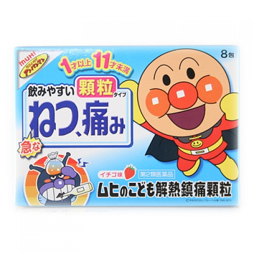 | ●1才から11才未満のお子さま用として開発した解熱鎮痛薬です。 ●お子さま好みの「イチゴ味」の顆粒剤です。 ●発熱時に消耗するビタミンC (アスコルビン酸) を配合しています。 ●胃にやさしい解熱鎮痛薬です。 ●保存・携帯しやすく、常備薬としても便利な個包装です。 |