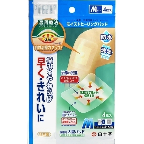 | ハイドロコロイド素材をパッド部に使用した家庭用絆創パッドです。 ハイドロコロイド素材がキズついた皮ふに集まったキズを治すための成分(体液)を吸収・保持する事で、キズ口の湿潤環境が保たれ、新しい皮ふが早くきれいに再生されます。 また、キズ口を乾燥させない事は、再生中の細胞を保護し、痛みの軽減にもつながります。 防水・透湿・透明の0.01mm高伸縮フィルムを使用。 角質剥離が少ない低刺激・高密着・高透湿のウレタンゲル粘着剤を使用。 管理医療機器。 |