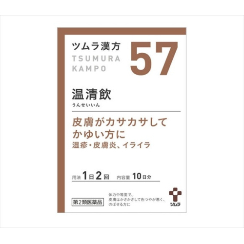 | 「温清飲」は,漢方の原典である『万病回春』に記載されている漢方薬で,血行がよくないため皮膚がかさかさして色つやが悪く,のぼせてしまうという方の「月経不順」,「月経困難」,「血の道症」,「更年期障害」,「神経症」等に用いられています。 「ツムラ漢方温清飲エキス顆粒」は,「温清飲」から抽出したエキスより製した服用しやすい顆粒です。 |