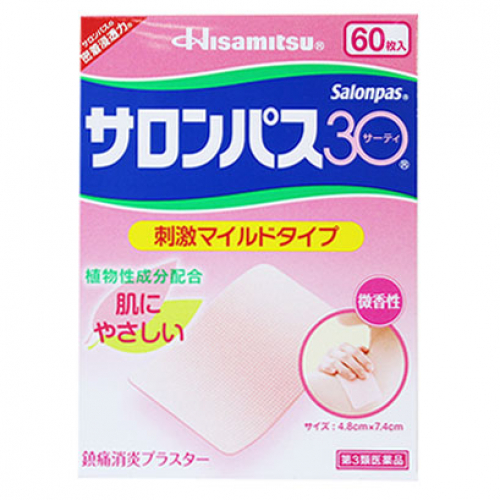 | 医薬品の使用期限 医薬品に関しては特別な表記の無い限り、1年以上の使用期限のものを販売しております。1年以内のものに関しては使用期限を記載します。 使用上の注意 ■してはいけないこと (守らないと現在の症状が悪化したり,副作用が起こりやすくなります。) 次の部位には使用しないでください。 (1)目の周囲,粘膜等。 (2)湿疹,かぶれ,傷口。 ■相談すること 1.次の人は使用前に医師,薬剤師又は登録販売者にご相談ください。 薬などによりアレルギー症状を起こしたことがある人。 2.使用後,次の症状があらわれた場合は副作用の可能性がありますので,直ちに使用を中止し,この箱 を持って医師,薬剤師又は登録販売者にご相談ください。 関係部位症 状 皮 膚 発疹・発赤,かゆみ,かぶれ,色素沈着,皮膚はく離 3.5〜6日間使用しても症状がよくならない場合は使用を中止し,この箱 を持って医師,薬剤師又は登録販売者にご相談ください。 効能・効果 肩こり,腰痛,筋肉痛,筋肉疲労,打撲,ねんざ,関節痛,骨折痛,しもやけ 用法・用量 1日数回患部に貼付してください。 用法関連注意 (1) 小児に使用させる場合には,保護者の指導監督のもとに使用させてください。 (2)患部の皮膚は清潔にして貼ってください。 (3)皮膚の弱い人は同じ所には続けて貼らないでください。 成分分量 膏体100g中 成分 分量 内訳 l-メントール 7g サリチル酸グリコール 5g 酢酸トコフェロール 2g グリチルレチン酸 0.1g (1枚:普通判4.8cm×7.4cm,中判6cm×9cm) 添加物 アクリル酸デンプン,酸化チタン,水添ロジングリセリンエステル,スチレン・イソプレン・スチレンブロック共重合体,ジブチルヒドロキシトルエン(BHT),ポリイソブチレン,流動パラフィン,その他1成分 保管および取扱い上の注意 (1)直射日光の当たらない涼しい所に保管してください。 (2)小児の手の届かない所に保管してください。 (3)他の容器に入れ替えないでください(誤用の原因になったり,品質が変わることがあります)。 (4)開封後は袋の口を折りまげ,箱に入れて保管してください。 消費者相談窓口 製造販売元 久光製薬株式会社 〒841-0017 鳥栖市田代大官町408 お客様相談室: 0120-133250 受付時間:9:00〜12:00,13:00〜17:50(土,日,祝日を除く) 製造販売会社 久光製薬(株) 会社名:久光製薬株式会社 住所:〒841-0017 鳥栖市田代大官町408 お問い合わせ先 製造販売元:久光製薬株式会社 久光製薬お客様相談室:0120−133250 (受付時間:9:00〜17:50)土日・祝日・会社休日を除く 原産国 日本 商品区分 医薬品 |