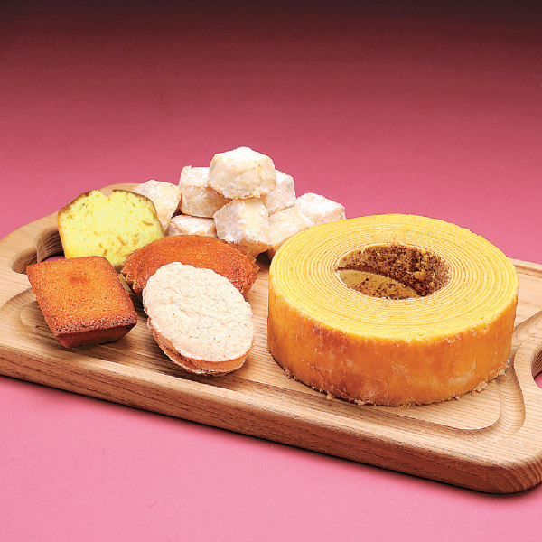| 原材料(バウム): 卵(国産)、砂糖類(上白糖、和三盆糖)、小麦粉、バター、アーモンド、植物油脂、水飴、加糖練乳、蜂蜜、クリーム(乳製品)、食塩、洋酒/トレハロース、加工澱粉、膨張剤、香料、着色料(カロチン)、(一部に卵・小麦・乳成分・大豆を含む) 栄養成分表示(100g当たり) 熱量382kcal、たんぱく質5.8g、脂質22.0g、炭水化物40.4g、食塩相当量0.2g ※推定値 | ||||||||||||||||||||||||||||||||||