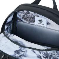 ミニカラビナやインナーライニングに施した山のプリントなど、クライミングや山との関連性を象徴するディテールが印象的なデイパック。バックには創業年である「1862」がエンボス加工されています。内側には整理用コンパートメントとラップトップコンパートメントを内蔵。フロントにジップポケットを備え、さらにマムートのミニビナ付きです。ソフトなパッドが入ったショルダーストラップは長さ調節ができます。