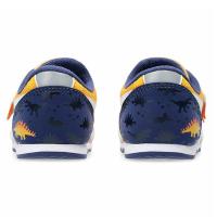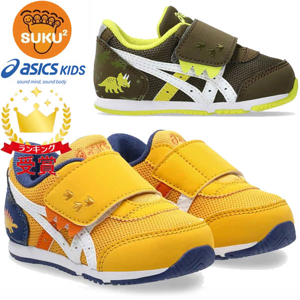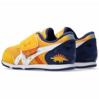 約1歳から3歳の幼児向けに展開する「BABY」シリーズのローカットシューズ。子どもたちの大好きな恐竜をモチーフにした、遊び心のあるアイテムです。扇形のつま先部分は足ゆびをのびのびと動かすことができ、踏ん張りやすいのが特徴です。アウターソールは、足の屈曲位置に合わせて溝を配置した「フレックスグルーヴ」を採用。足の動きにしなやかに追従します。かかとの安定性を重視し、かかとを包み込む立体的なインナーソールを使用しています。インナーソールの表面材には抗菌・消臭効果のあるシャインアップと、汗をすばやく吸収・拡散してドライ感を保つウォーターマジックを採用。靴の中を快適に保ちます。甲の内側を1枚の布で包み込むような構造のキモノフィットタンにより、フィット感を高め、アーチ部の倒れ込みを抑えます。アッパーは通気性に優れたラッセルメッシュを使用。ベルトには恐竜の背中をイメージするギザギザのモチーフと恐竜の足跡の刺繍を配置し、ベルトをめくると恐竜が現れる遊び心のあるデザイン。かかと部にも恐竜のプリントを配置しています。街灯や車のライトなどの光を反射する再帰反射材(リフレクター)をかかと部に配置しています。