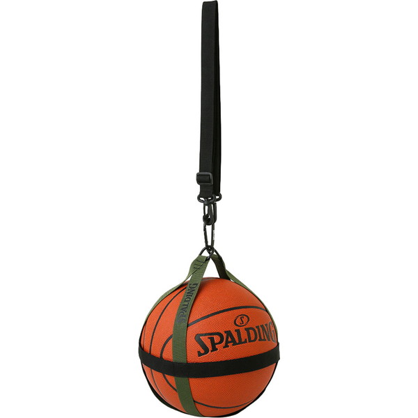 ハーネスベルト式のボールバッグ。5〜7号球のバスケットボールが収納可能。カラビナ付きで他のバッグにも接続可能。