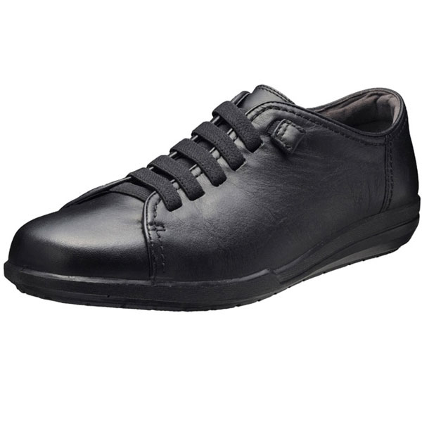 人気のゴム紐仕様。スリップオンのように脱ぎ履き可能。履き口にはウレタンパッド入りで、足に柔らかくフィット。