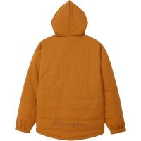 表地は撥水加工を行ったストレッチ性に優れた生地で、中綿には軽量で保温性に優れたポリエステル素材「THERMOLITE (サーモライト)」を使用したジップフーデッドジャケットです。身幅と肩幅にゆとりを持たせたリラックスフィット。首上まで閉めることができる高めに設計したフロントジッパー、フードと裾に付けた締まり具合を調節できるアジャスター、袖口に採用したベルクロ仕様などによって、防風性と保温性をさらに高めています。左胸にCロゴとChampion(チャンピオン)のコンビネーションロゴのワッペンを付け、後ろ身頃裾にはChampionロゴをラバープリントで入れています。