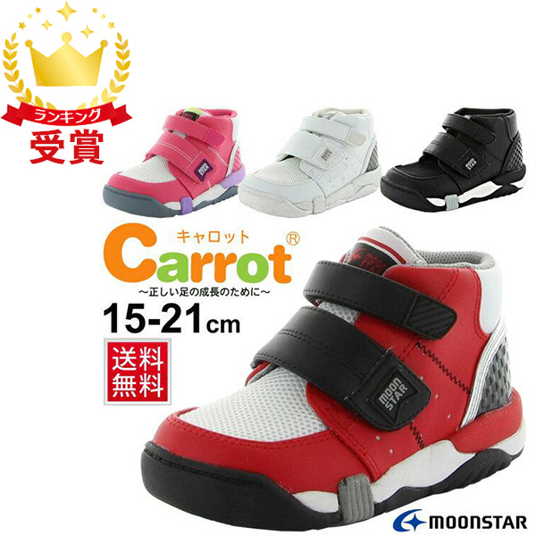 ◆ ブランド ムーンスター【moonstar】 商品番号 CR-C2140 カラー ホワイト ピンク レッド ブラック サイズ 15.0-21.0cm(ハーフあり) 足幅:2E(標準) / 重量:片足約180g/16.0cm時 素材 アッパー:合繊/合皮 ソール:特殊EVA/合成ゴム