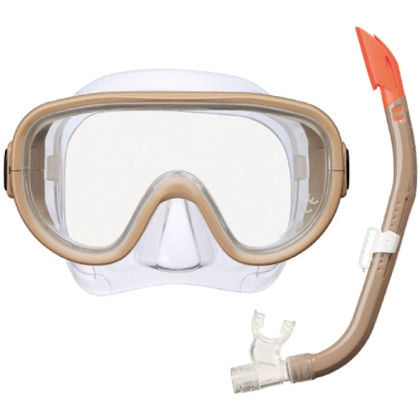 マスクに水が入りにくいWスカートのマスクとWガード機能で水上でパイプ内に水が入りにくいシュノーケルをセットにしたシュノーケル2点セット。水着やラッシュに合わせやすいアウトドアカラー。