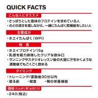 高品質なWPI(ホエイプロテインアイソレート)を使用しているので、プロテイン量としては不足のない15gを確保した。