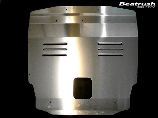 ビートラッシュ・アンダーパネルは、高速時に下面の整流効果を向上させダウンフォースを発生させます。ベンチレーターを設けることによりエンジンルームの熱を効率よく排出しエンジンのヒートアップを防ぎます。2.0mm厚のアルミ材を使用し、重量増にも配慮しました。