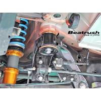 ビートラッシュ・リアメンバースペーサーは純正のメンバーブッシュの上下凹凸に合わせブッシュを挟み込んでリアメンバーの動きを抑制することで無駄な動きを無くし、トラクション性能やサスペンション性能を高めます。また、ブッシュ交換の必要がありませんので強化ブッシュに比べ簡単に取付できます。