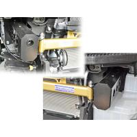 車体構成の基礎となるプラットフォーム。中でもシャシーの基本となるメインフレームは2本のフレームの先端後端がバンパーホースメントや薄い鉄板で繋がっているだけ。そのため車体の捩じれ剛性は弱く、コーナーの進入時のように1輪に荷重がかかる場合には車体が捩じれてしまいタイヤやサスペンションが十分に機能しません。 フロントフレームトップバーはフレーム先端のバンパーホースメントの代わりに装着し、フレームの動きを抑制し捩じれ剛性を向上させます。