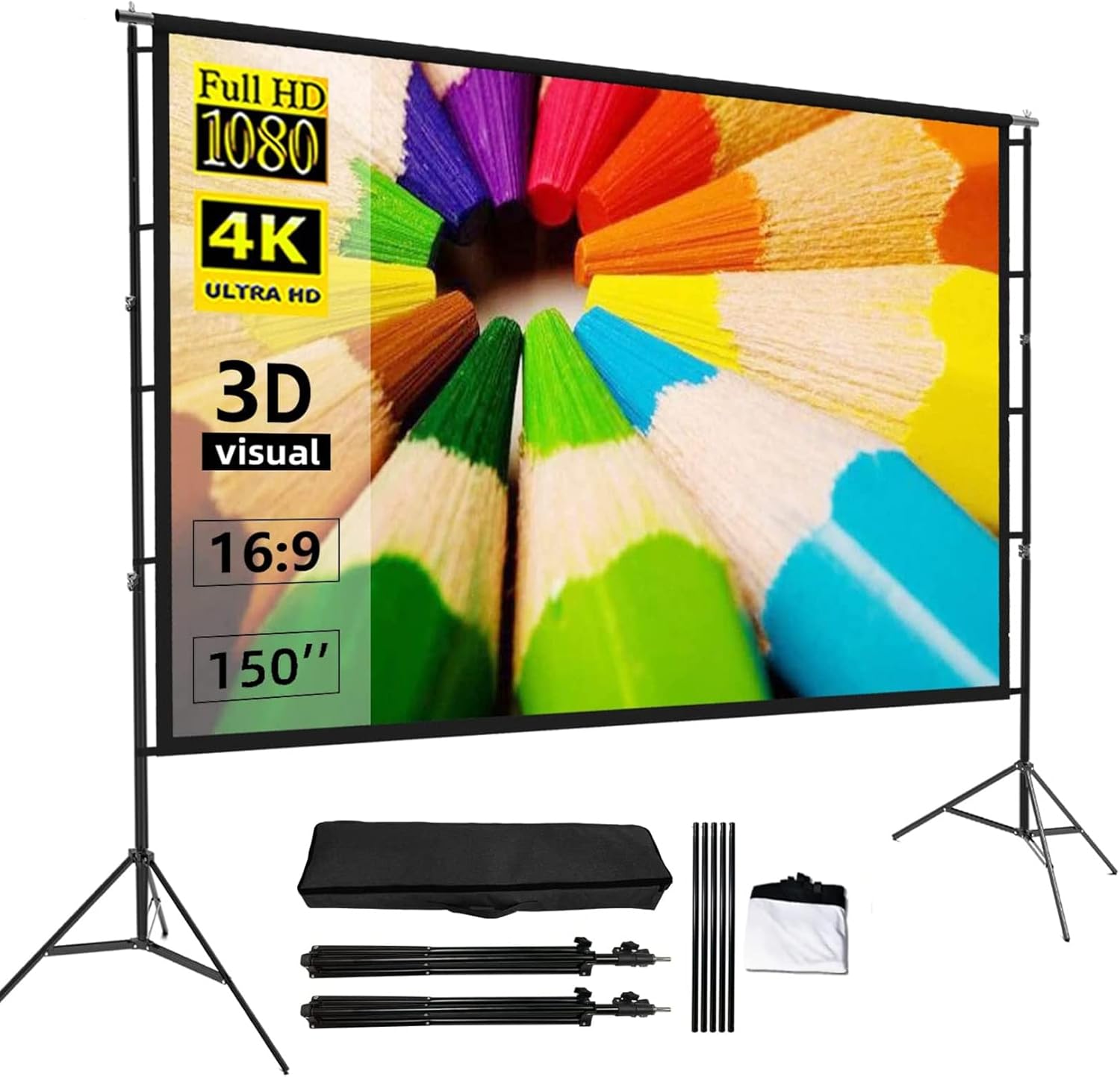 送料無料 プロジェクタースクリーン 4K 16:9 HD 60/84/100/120/150インチ 3Dポータブル折りたたみ式 自立型 室内室外 視野角160° 投影用