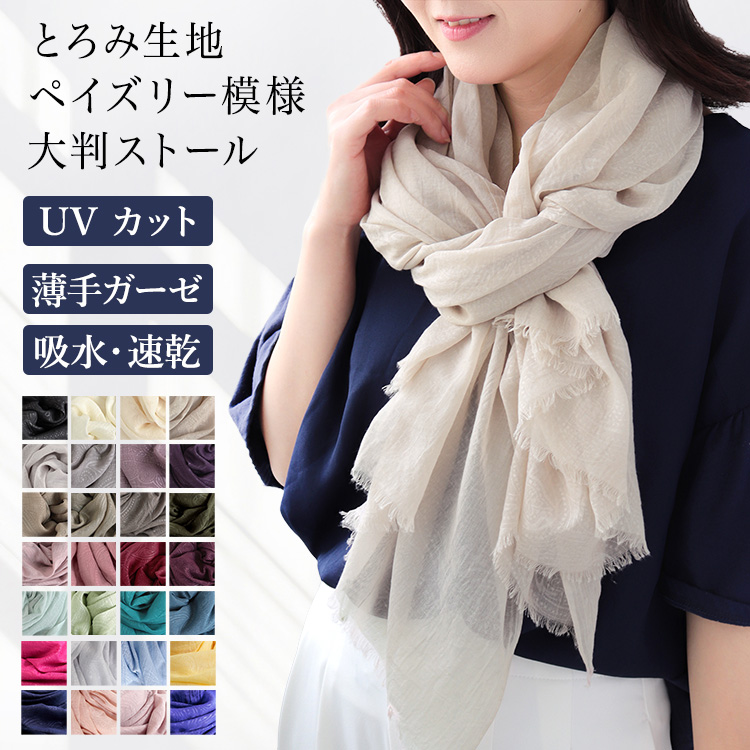 大判 ストール レディース 春 夏 秋 用 ペイズリー 透かし模様 シワ加工 全20色 a1 a8 プレゼント ギフト クリスマス