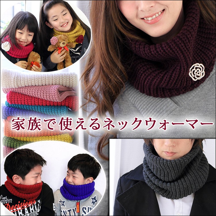 ニット スヌード レディース メンズ キッズ 秋 冬 用 輪っか状 ネックウォーマー 一重 ショート 無地 全15色 防寒 小顔 クリスマス